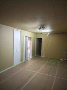 室内のボード施工が進み、空間の形がはっきりと見えてくる段階になりました。